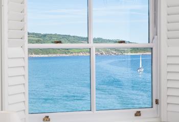 Schlafzimmer 1 Kingsize Doppelbett, Smart TV/DVD, Meerblick, angeschlossenes Bad mit Badewanne mit Dusche, WC, Waschbecken.